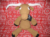 I Want My Mummy W/ Gray make Frank Jr. pattern in all gray .You do not need to stuff this as full as you did Frank Jr. Using white or off white or a mix of the two Ch 100, Dc in 3rd ch from hook and in each ch. Fasten off leaving tail a little longer than this piece measures for sewing to body. Make as many of these strips at different lengths as needed to cover the Mummy like you’d like. I made the eyes out of white felt & painted on a big black center to peak through the wrapping. Sew the strips on but leave little pieces at the beginning & end loose. Sew these strips to body as desired. You could also use some gray makeup lightly rubbed on these pieces to make it look older. Enjoy : )